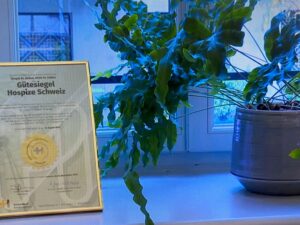 Mit grosser Freude dürfen wir bekannt geben: Unser Hospiz trägt neu das Gütesiegel „Hospize Schweiz“. Diese Auszeichnung würdigt unsere Pflege- und Betreuungsqualität sowie unsere Haltung, Menschen am Lebensende mit Würde, Respekt und Achtsamkeit zu begleiten.